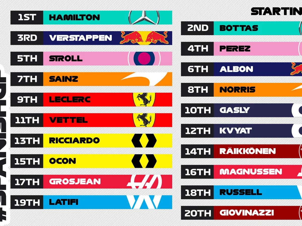 Pe locurile 6-10 ale grilei vor fi thailandezul Alexander Albon (Red Bull), spaniolul Carlos Sainz (McLaren-Renault), britanicul Lando Norris (McLaren-Renault), Charles Leclerc din Moanco (Ferrari) şi francezul Pierre Gasly (Alpha Tauri).