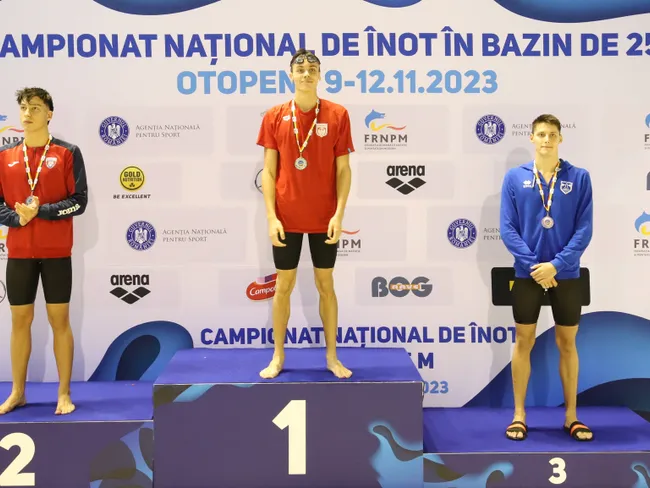 Înotătorul David Popovici (CS Dinamo) s-a impus fără emoţii în proba de 200 m liber la Campionatele Naţionale în bazin scurt (25 metri) de la Complexul Sportiv de Nataţie din Otopeni, cu timpul de 1 min 43 de 01/100.