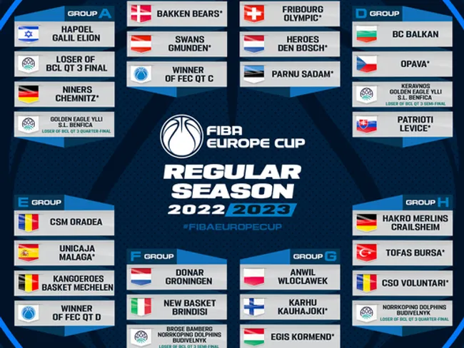 CSO Voluntari va face parte din Grupa H, alături de Tofaş Bursa, Hakro Merlins Crailsheim (Germania) şi o echipa din preliminariile BCL (Norkkoping Dolphins sau Budivelnik).