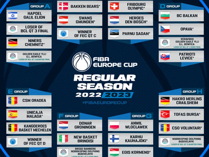 FIBA Europe Cup: Echipele româneşti de baschet masculin şi-au aflat adversarele