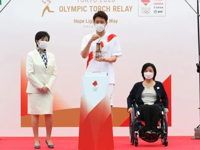 Ştafeta torţei olimpice trebuia să genereze emoţie, dar a fost interzisă pe drumurile publice din mai multe departamente şi chiar la Tokyo. Micile ceremonii de aprindere a flăcării sunt organizate simbolic fără spectatori.