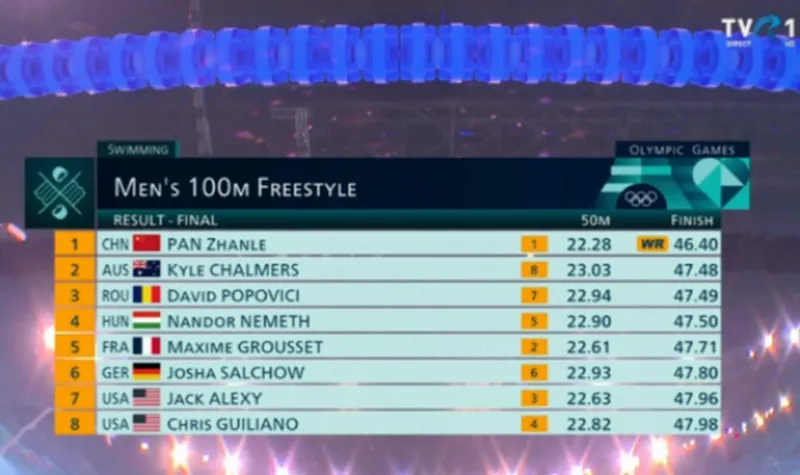 David Popovici a terminat semifinalele cu cel de-al cincilea timp, la general: 47.66. Primul a fost chinezul Pan Zhanle (47.21).