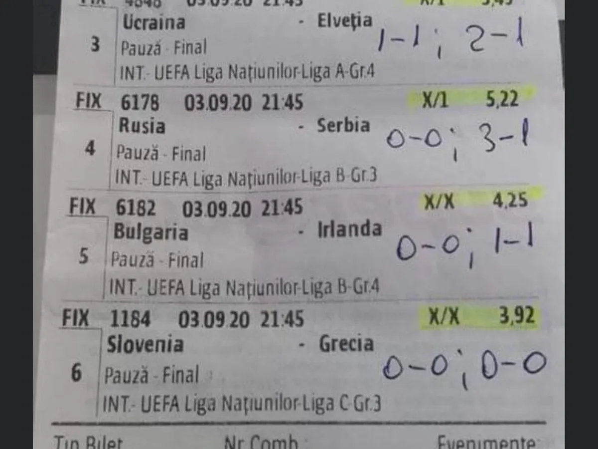 Un bilet neverosimil a circulat printre pasionații de fotbal și amatorii de pariuri. Veridicitatea sa a fost confirmată fără dubiu după cum se vede mai jos.