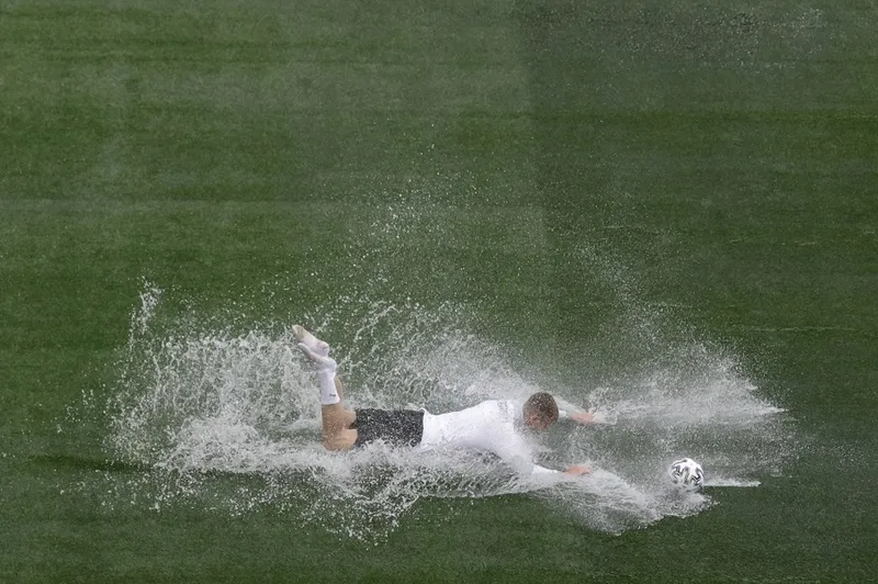 Asta s-ar fi întâmplat dacă ar fi plouat conform prognozei meteo în timpul meciului Austria - Macedonia de Nord. Imaginea a fost surprinsă cu o zi înainte de meci. Drenajul a funcționat și gazonul a fost în stare bună Foto: INQUAM Photos /Octav Ganea