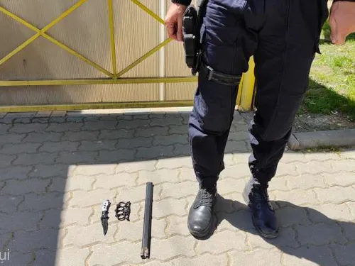 FOTO Doi tineri au mers la meciul LPS Vaslui - ACS Rapid cu un briceag, un box şi o bară metalică