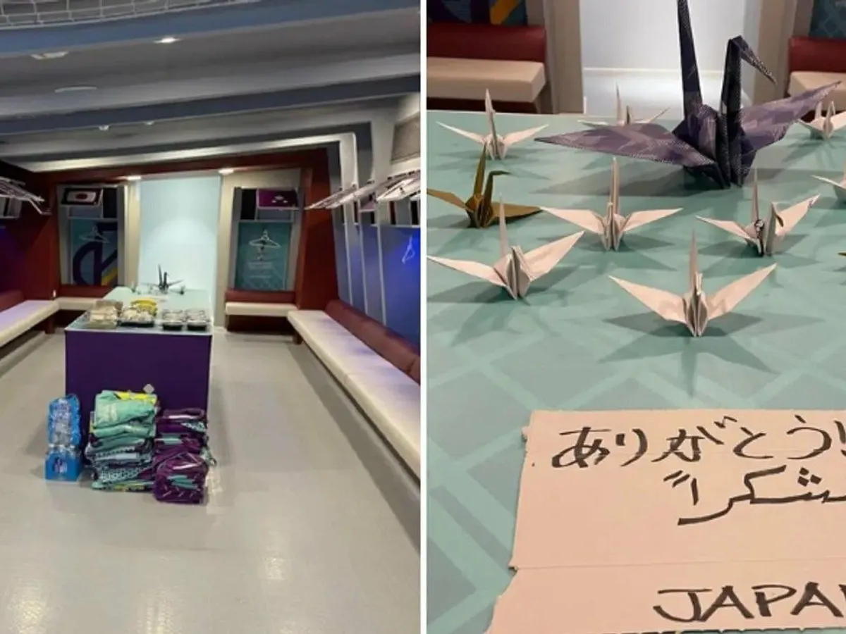 Mai mult, niponii le-au pregătit și o surpriză qatarezilor: 11 figurine origami în formă de cocori, plus un mesaj de mulțumire în japoneză.