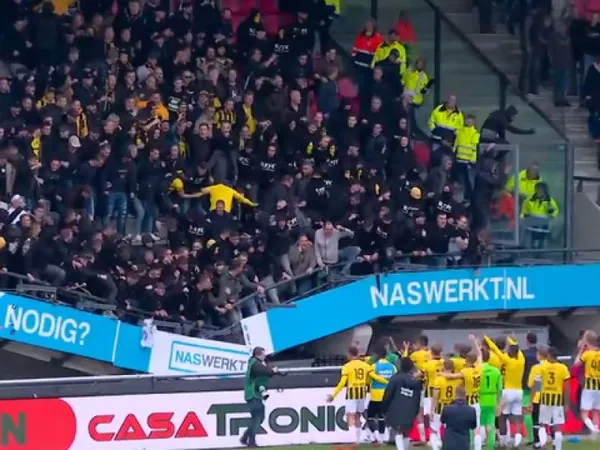 Duminică, porţiunea inferioară a unei tribune s-a prăbuşit în timp ce suporterii lui Arnhem săreau şi se bucurau în urma înscrierii golului de către echipa lor favorită. Nu s-au înregistrat răniţi.