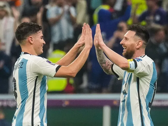 Acum 10 ani, Alvarez i-a cerut lui Leo Messi o poză ca mare fan, visând într-o zi la Cupa Mondială... În seara asta: Julián Álvarez de la Calchín marchează în semifinala Cupei Mondiale.