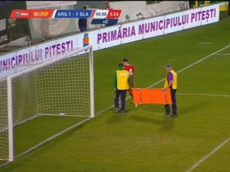 Un fotbalist a fost lovit de un brancardier la meciul FC Argeș – CSM Slatina, după ce jucătorul a refuzat să iasă de pe teren pe targă.