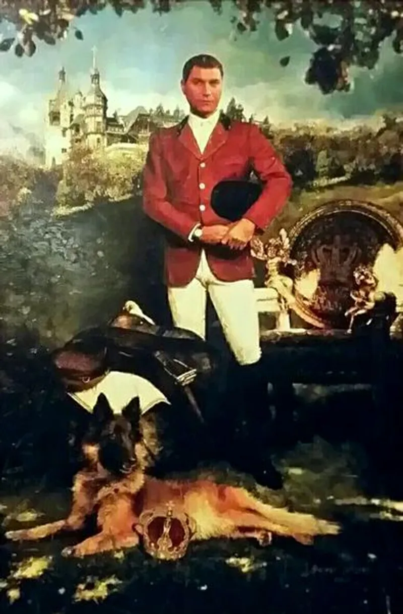 Pictura îl înfăţişează pe Borcea în rolul unui nobil, iar la picioarele sale are un ciobănesc german – ce vrea să sugereze leagătura cu Dinamo. Pe fundal tronează un castel!