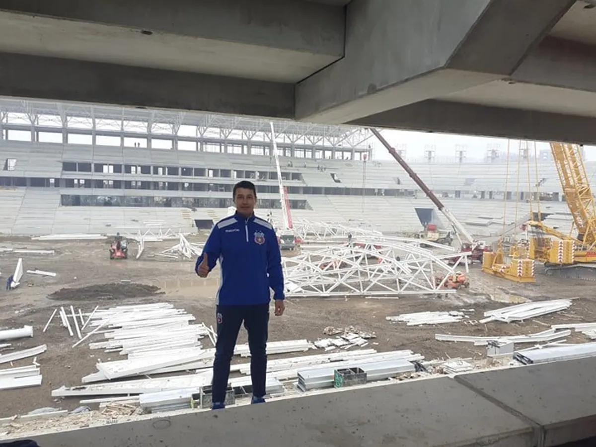 Reporterul Newsweek România a fost însoțit în vizită pe șantierul stadionului de fostul fotbalist al Stelei, ex-internaționalul Iulian Miu (foto sus). La 43 de ani, acesta era într-o formă fizică care amintea de perioada sa de glorie (1996 - 2002) petrecută la Steaua București. Pe unul din terenurile apropriate, echipa se antrena sub îndrumarea principalului Daniel Oprița.