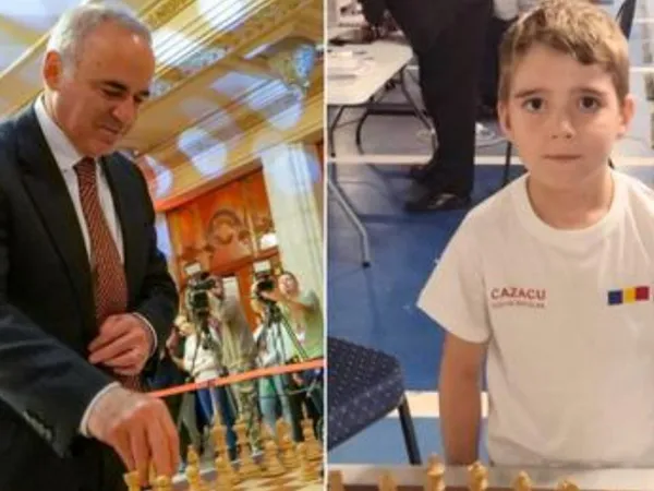 Geniul român al șahului, Nicolas Cazacu, un băiețel din Iași care la doar 8 ani a devenit campion mondial și european la șah, s-a întâlnit pe tabla de șah cu legendarul Garry Kasparov la deschiderea turneului Grand Chess Tour 2023 la București.
