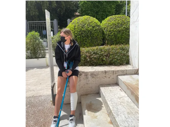Două zile mai târziu, a postat pe rețelele sociale o fotografie în care apare cu gamba stângă bandajată și cu o cârjă în mână.