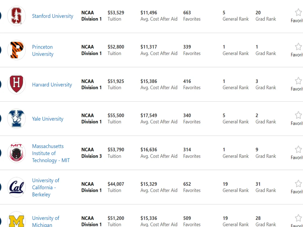 Colegiile de mai sus sunt nu doar cele mai bune la înot, dar sunt în topurile mondiale la învățătură. Taxa anuală depășește în 6 din cele 7 universități de mai sus suma de 50.000$. David Popovici nu va plăti vreun leu, el beneficiind de bursă completă.