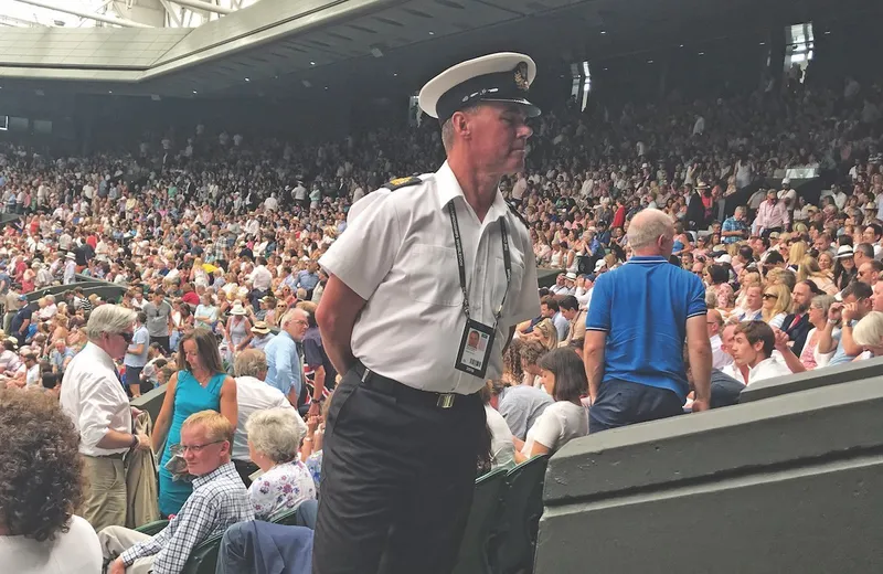 Centre Court are 15.000 de locuri. În culisele de la ultimul etaj parcă ai fi la operă: perdele de catifea acoperă accesul în tribune pentru a estompa zgomotul și a nu deranja publicul. La pauzele dintre ghemuri, totul se petrece cu maximă repeziciune, fiindcă plasatorii, militari de profesie, detașați din British Army, Royal Air Force și Royal Navy, sunt prezenți peste tot și știu exact unde mai sunt locuri disponibile.