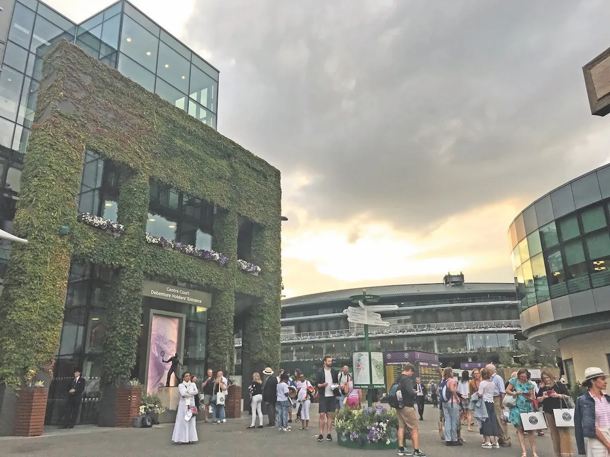 Wimbledon, No. 1 Court, 11.000 de locuri. Pe ecranul TV agățat pe peretele din fața intrării, poți urmări meciul în curs, în așteptarea pauzei care să-ți permită accesul în tribună.