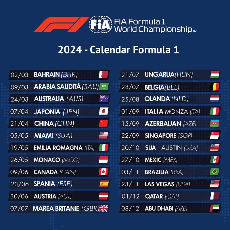 Startul sezonului de Formula 1 2024 se apropie cu pași repezi. „Marele circ“ începe, atenție, sâmbătă (de obicei, cursele de F1 au loc duminica), 2 martie, cu Marele Premiu al Bahrainului, și are programate în total 24 de etape.