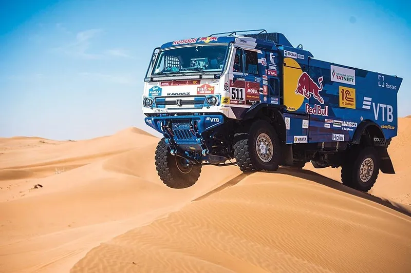 La camioane, Kamaz (foto jos) a făcut din nou istorie. Echipajul format din Andrei Karghinov, Andrei Mokeev şi Igor Leonov i-a adus constructorului rus cel de-al patrulea titlu consecutiv în Dakar și al 17-lea din palmares.