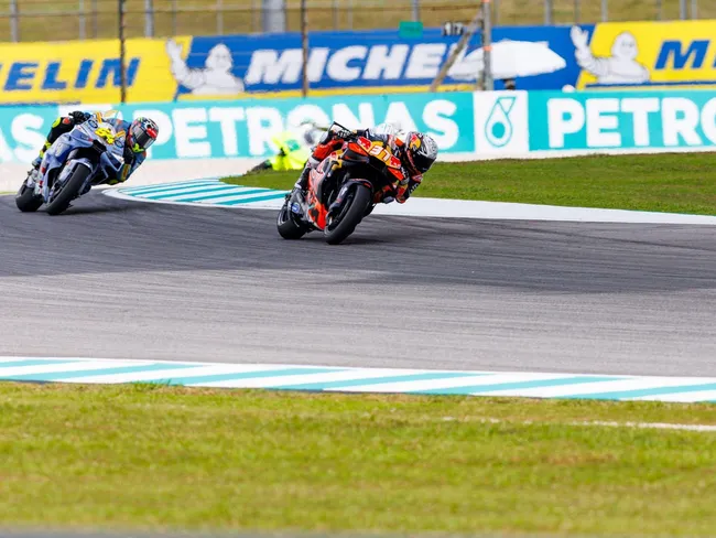 Pilotul spaniol Fermin Aldeguer (Ducati-Gresini), clasat pe locul al treilea în cursa de sprint a Marelui Premiu al Malaeziei la MotoGP, desfăşurată sâmbătă, a fost penalizat din cauza presiunii neconforme a pneurilor motocicletei sale, fiind retrogradat pe poziţia a şaptea.