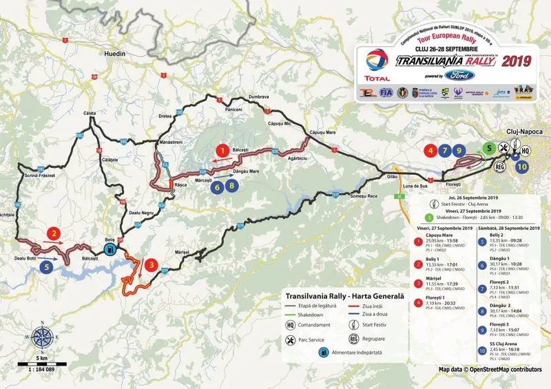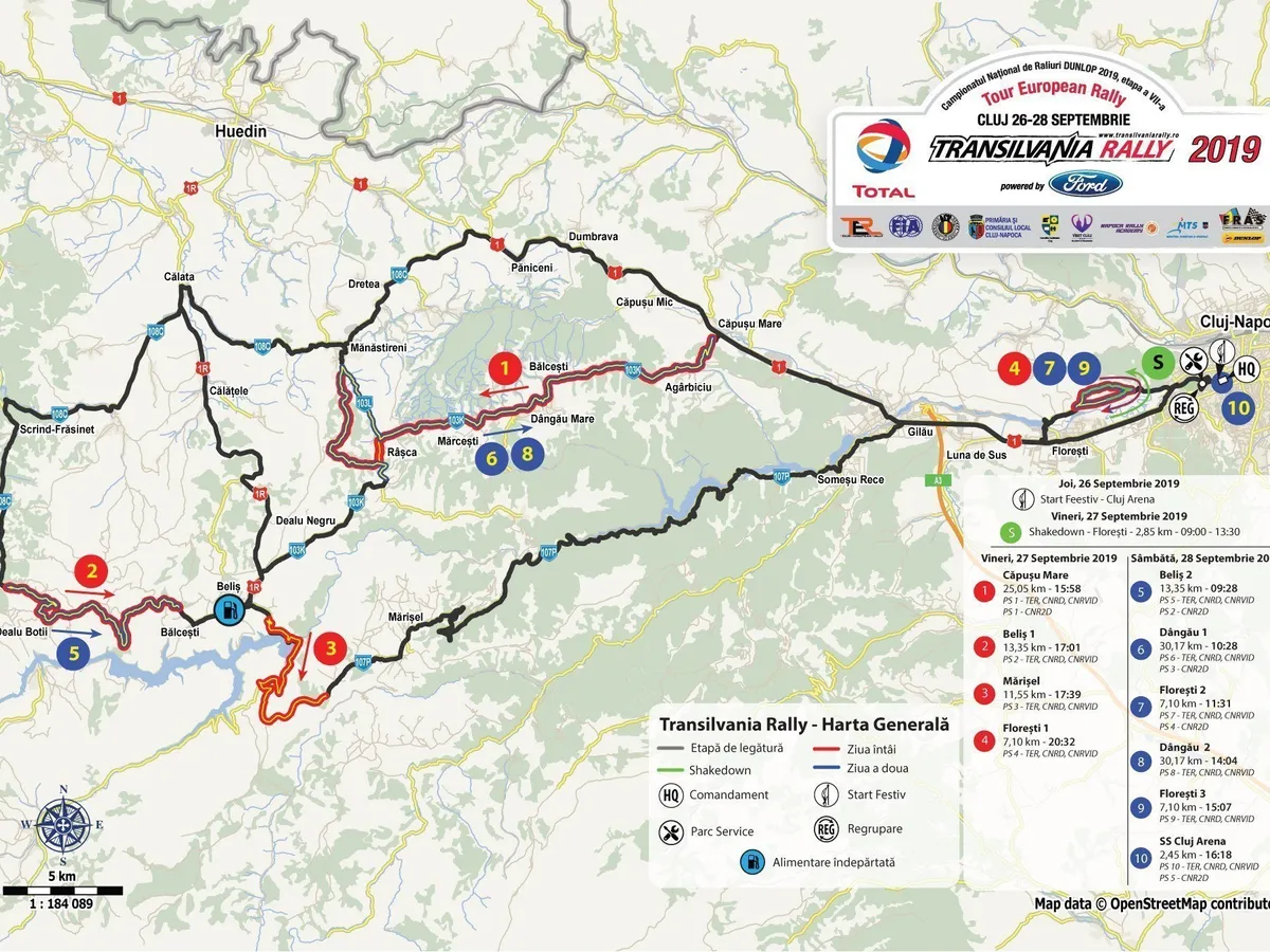 Total Transilvania Rally powered by Ford a început joi, 26 septembrie, la ora 19:30, cu o întâlnire cu piloţii şi o sesiune de autografe pe esplanada din faţa stadionului Cluj Arena. Vineri, între orele 9:00 şi 13:30, este programat un shakedown pe drumul de lângă Floreşti, iar raliul propriu-zis va debuta pe 27 septembrie, la ora 15:00, când prima maşină de concurs va părăsi parcul de service de la Sala Sporturilor „Horia Demian”.
