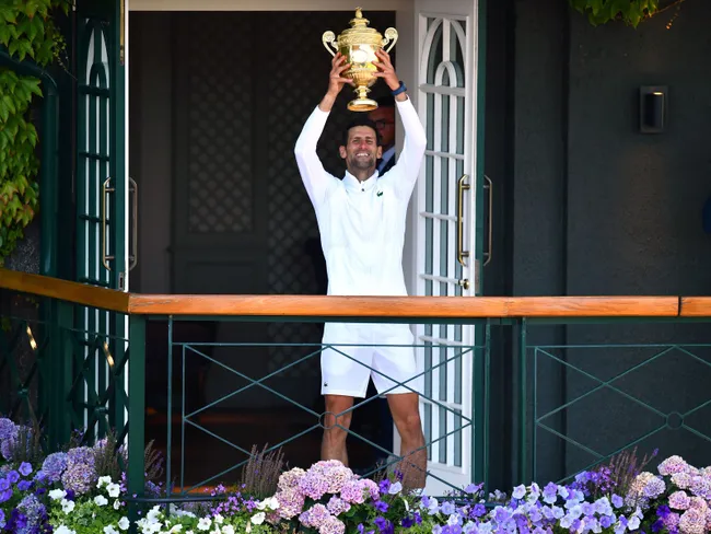 Djokovici a mai câştigat turneul de la Wimbledon în 2011, 2014, 2015, 2018, 2019 şi 2021. El a jucat în finală şi în 2013, însă atunci a fost învins de Andy Murray. Este ala 21-lea titlu de grand slam din cariera sârbului.