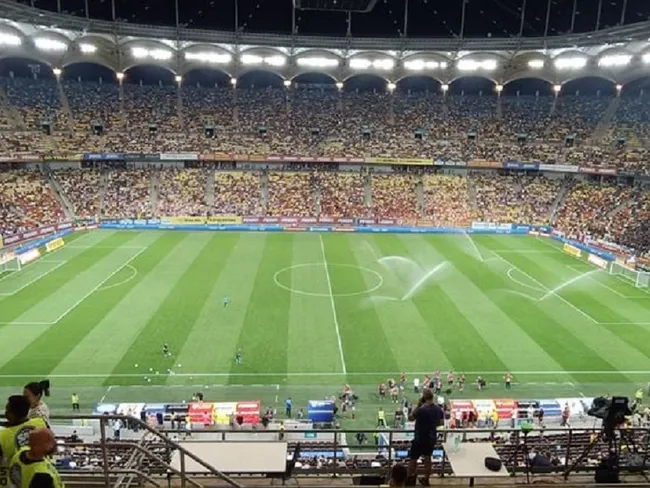 UPDATE 22.48: Fotbaliștii au revenit pe teren, urmează o perioadă de 10 minute de încălzire. Fanii scandează „România, România!”. Crainicul arenei a avertizat încă o dată că la următorul incident meciul va fi oprit definitiv.