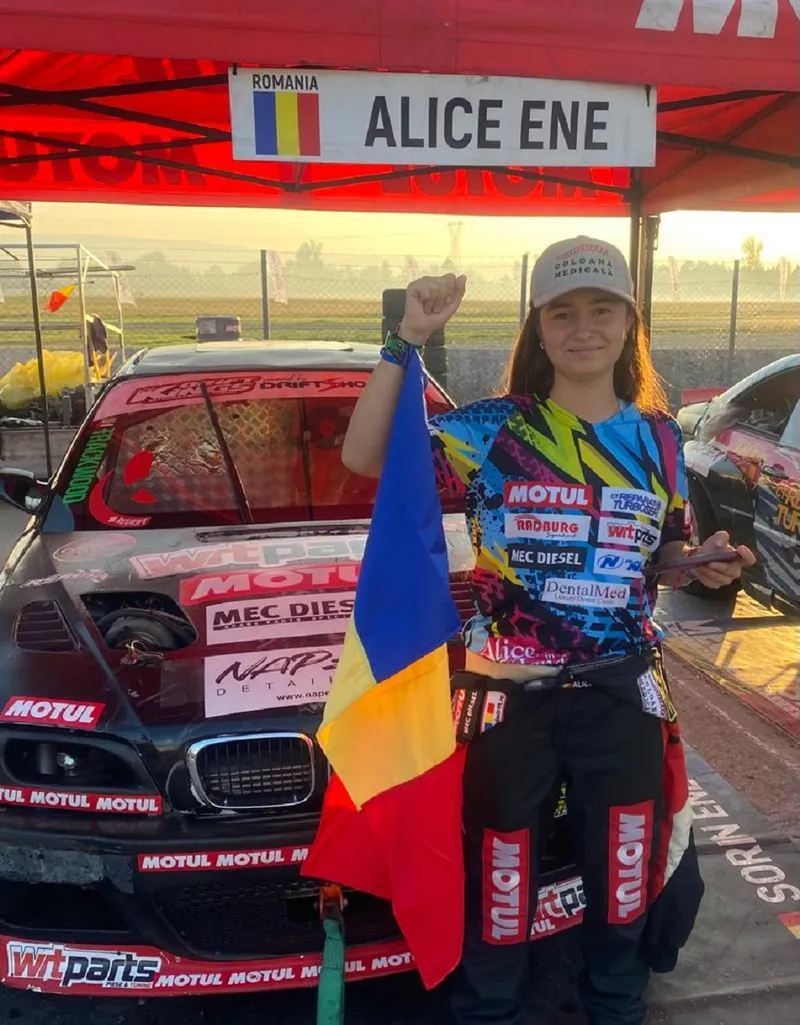 Alice Ene este adolescenta româncă intrată în Cartea Recordurilor pentru pilotaj. Avea doar 14 ani. Acum, la 16 ani, câștigă ultima etapă din Campionatul European de Drift la Clasa Queen. A făcut ca imnul României să răsune în Grecia.