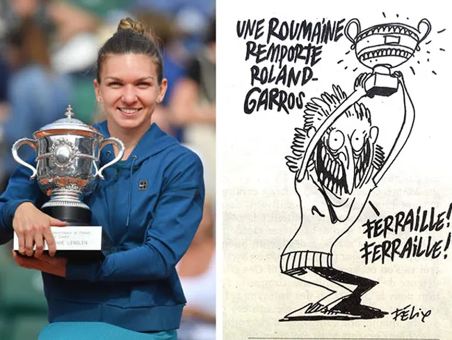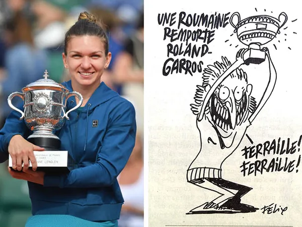 Poate cel mai cunoscut caz este cel al Simonei Halep. După ce a câștigat turneul feminin de la Roland Garros în 2018, a fost ținta unei caricaturi rasiste a publicației Charlie Hebdo, după succesul de la Paris. Caricatura apărută în ediția tipărită a revistei și o înfățișa pe Simona Halep încercând să vândă la fier vechi trofeul câștigat la Roland Garros.