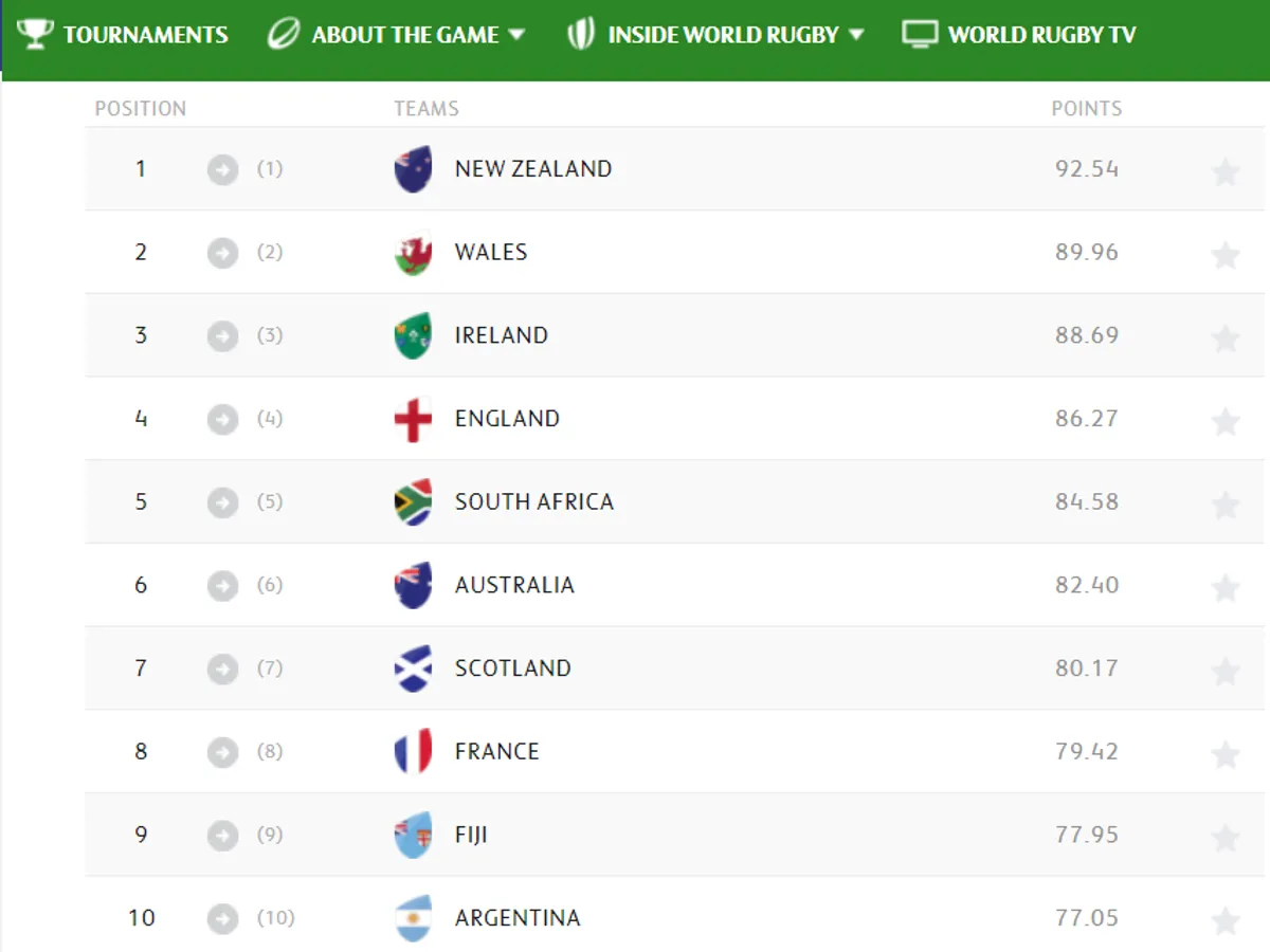 În același clasament, pe primele trei locuri de află Noua Zeelandă, Țara Galilor și Irlanda.