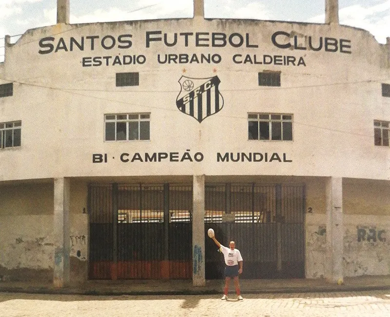 În fața stadionului echipei celebrului Pele, acolo unde Nicolae Șișiu a intrat cu balonul de rugby