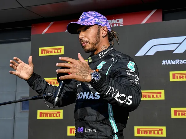 Căzut la un moment dat de pe locul 2 pe 5, după ce a efectuat penalizarea, Hamilton a reuşit o recuperare spectaculoasă şi l-a întrecut în ultimele tururi, în ovaţiile numerosului public din tribune, pe liderul din acel moment al cursei, monegascul Charles Leclerc de la Ferrari.