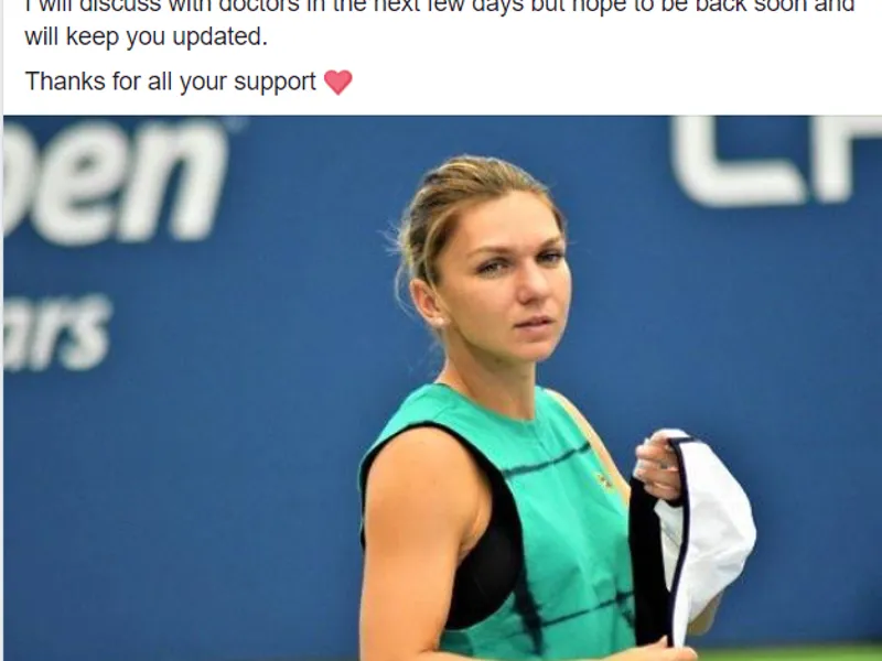 Simona Halep a dezvăluit pe pagina sa de Facebook că are hernie de disc, dar a precizat că va discuta cu mai mulți medici și că va reveni cu vești în curând.