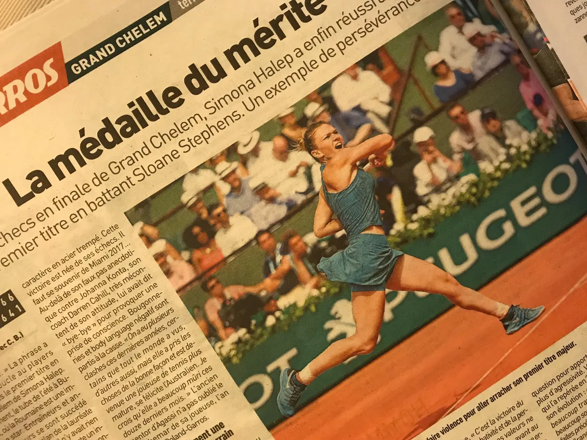 „Un exemplu de perseverență”, titra cotidianul L’Équipe a doua zi după succesul Simonei la Paris. Sub semnătura Sophiei Dorgan, care urmărește tenisul feminin mondial de 10 ani, prestigioasa publicație franceză nota că „în sfârșit, tenismena din România a dovedit că este cea mai bună jucătoare din lume la ora actuală”.