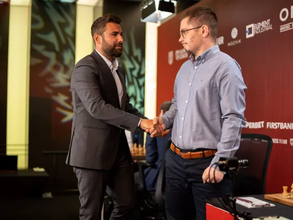 Levon Aronian, câștigătorul din 2019 al turneului Superbet Rapid&Blitz se află iarăși pe prima poziție. În această partidă împotriva fostului challenger la titlul mondial, a ales o deschidere mai liniștită, fără prea multe riscuri. Cu siguranță este unul dintre jucătorii care știe cum să-și dozeze efortul, iar finalul competiției se anunță extrem de disputat. După aproximativ două ore de joc, fără ’’artificii’’ pe tabla de joc, partida s-a încheiat remiză.
