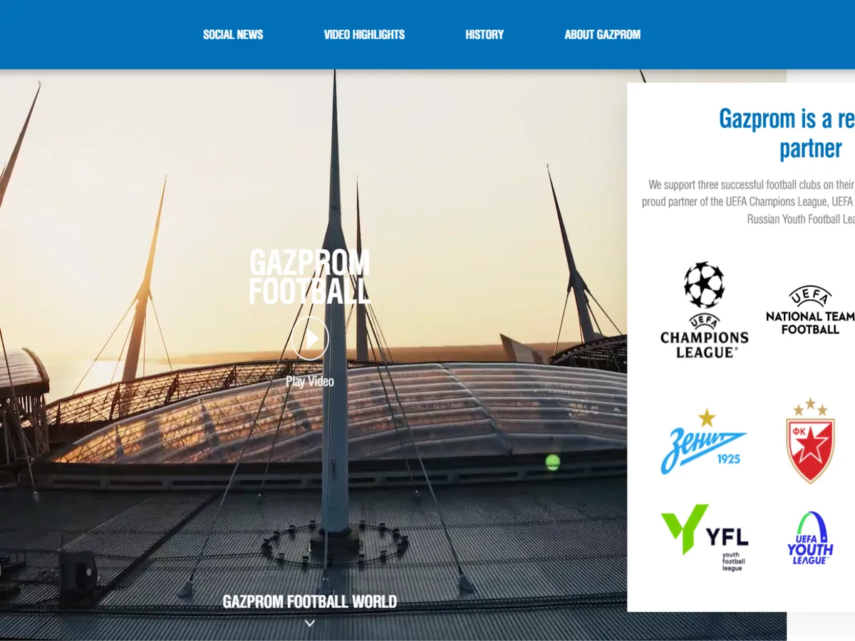 Gazprom a sponsorizat Liga Campionilor cu 40 milioane de euro pe an până în 2021 când contractul a fost extins și renegociat, scrie ft.com.