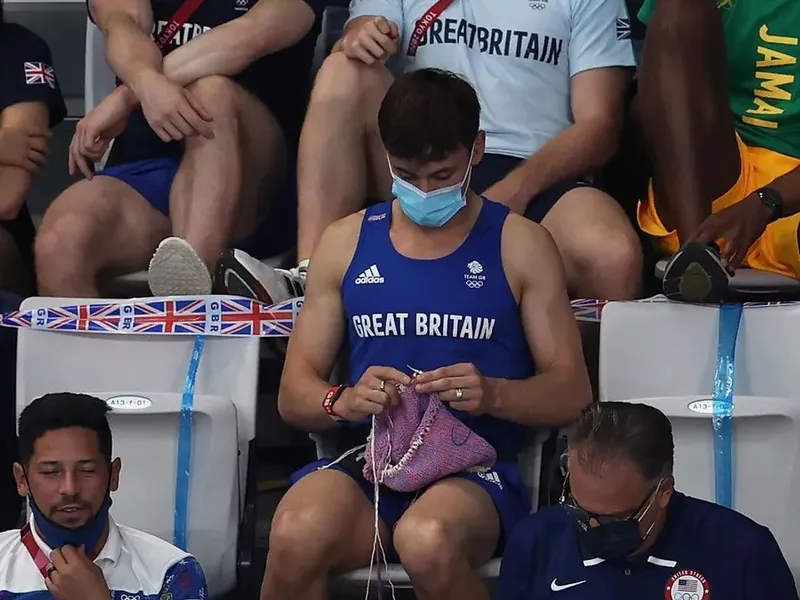 Dar sportivul a devenit mai cunoscut în lume pentru un altfel de „sport”: s-a aflat duminică în tribună pentru finala de trambulină feminină de 3 m și a fost surprins de camerele de televiziune cum lucra de zor la ultima sa creație din lână.Tom Daley, medaliat cu aur la Jocurile Olimpice, a stârnit un moment comic după ce a fost văzut tricotând în tribunele de la Tokyo.