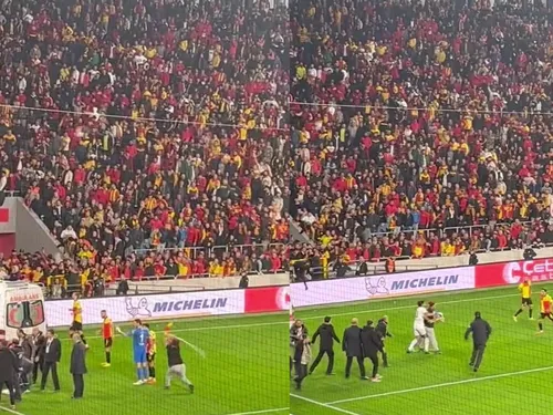 Portarul lui Altay, Ozan Evrim Ozenc, a părăsit suprafața de pedeapsă pentru a verifica situația și a făcut semn organizatorilor să cheme ambulanțe pentru suporterii răniți.