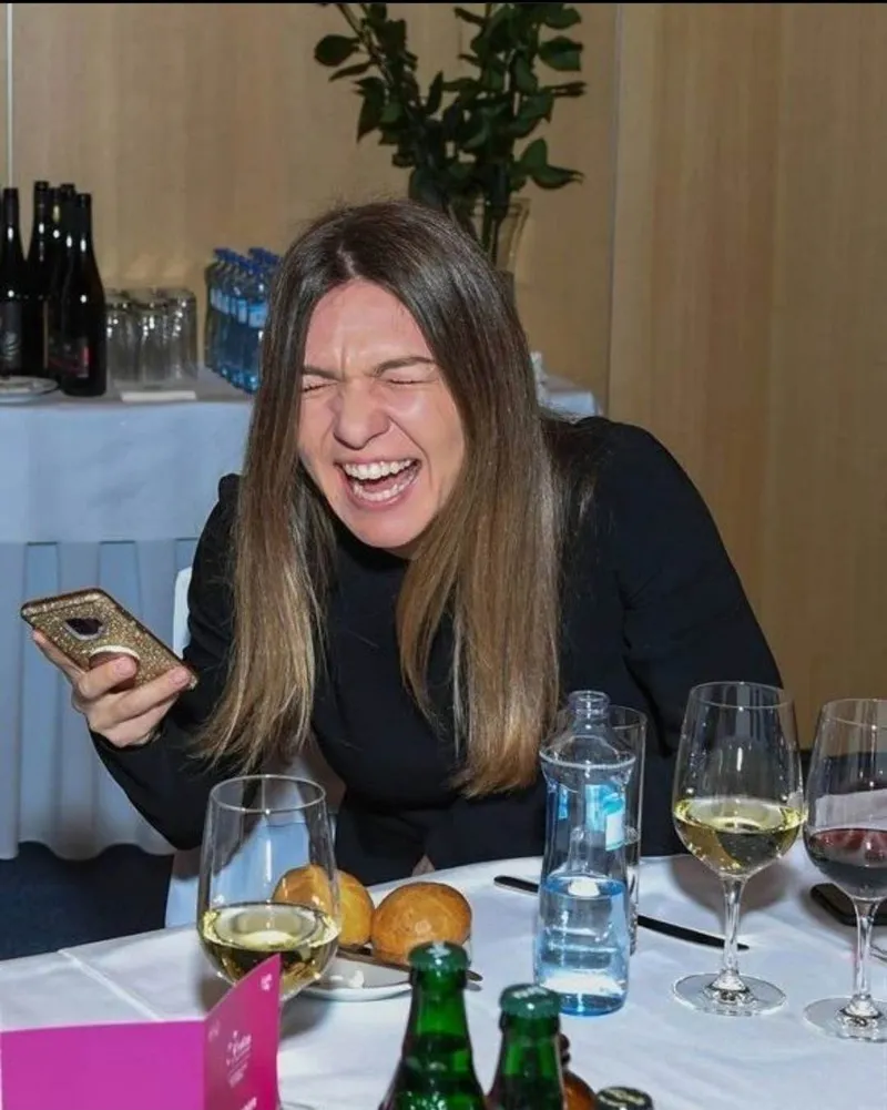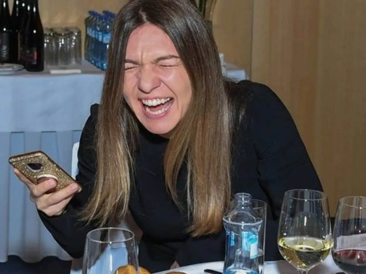 Într-o fotografie în care tenismena râde molipisitor, apare explicația următoare: ”Simona Halep atunci când aude că i s-a terminat cariera”.
