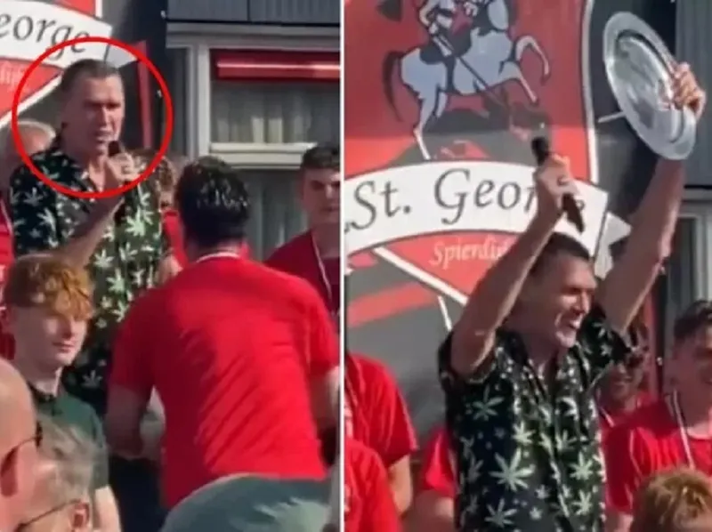 Dar ceea ce a stârnit cu adevărat indignarea lor a fost un clip în care jucătorii și oficialii de la St. George își sărbătoresc promovarea alături de arbitru.