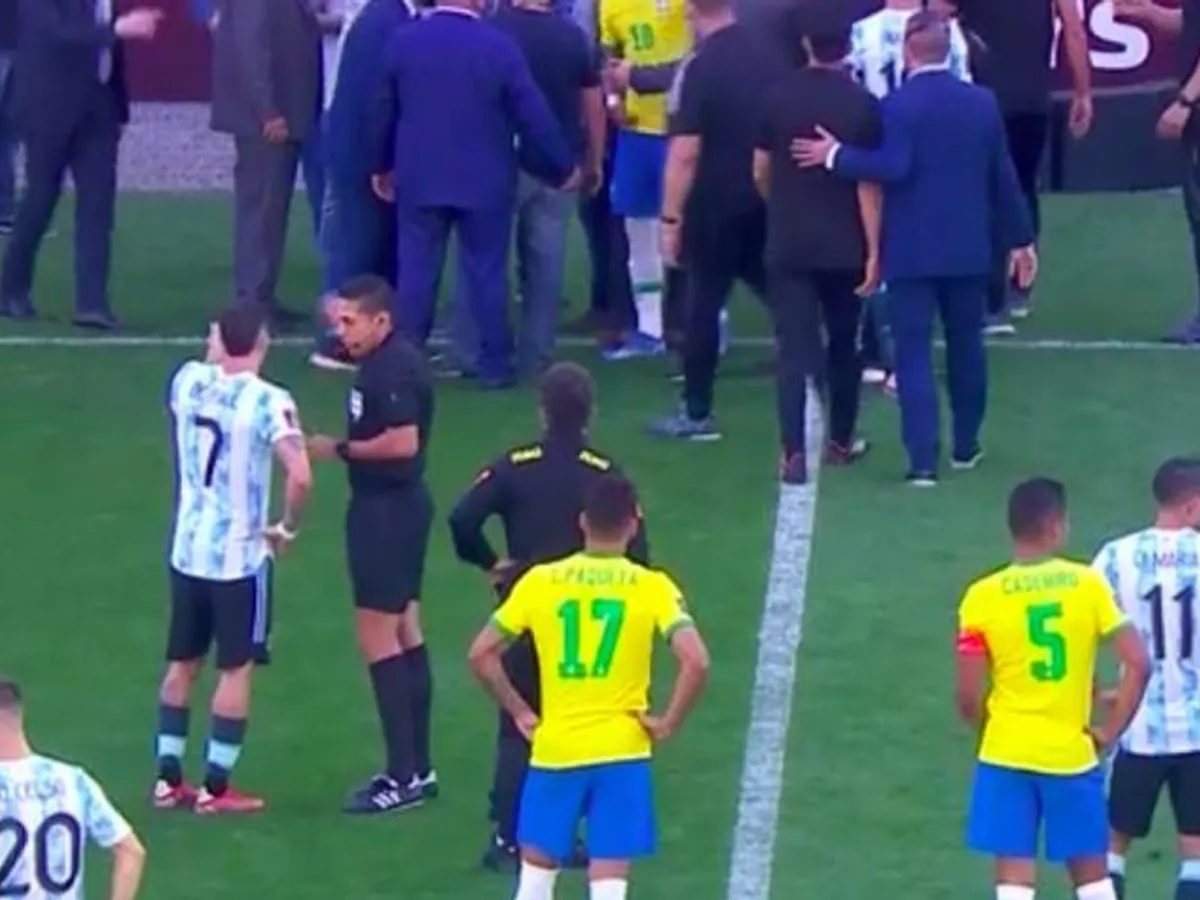 Confruntarea a fost suspendată după doar 7 minute, după ce agenții sanitari din Brazilia au intrat pe teren în încercarea de a împiedica 4 jucători ai oaspeților să evolueze.