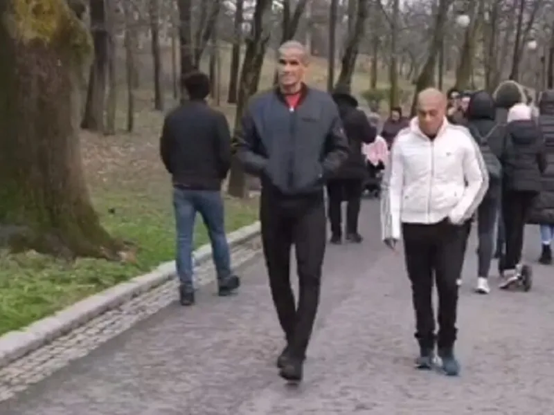Într-un clip devenit viral pe rețelele de socializare, fostul mare fotbalist brazilian Rivaldo apare plimbându-se printr-un parc din centrul Craiovei alături de o cunoștință, observă că este filmat și zâmbește la cameră.
