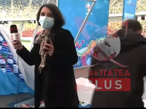 Trofeul EURO2020 a fost adus la București și expus pe Arena Națională, evenimentul fiind organizat de Federația Română de Fotbal. La un moment dat, lucrurile au scăpat de sub control chiar în timpul live-ului unui reporter.