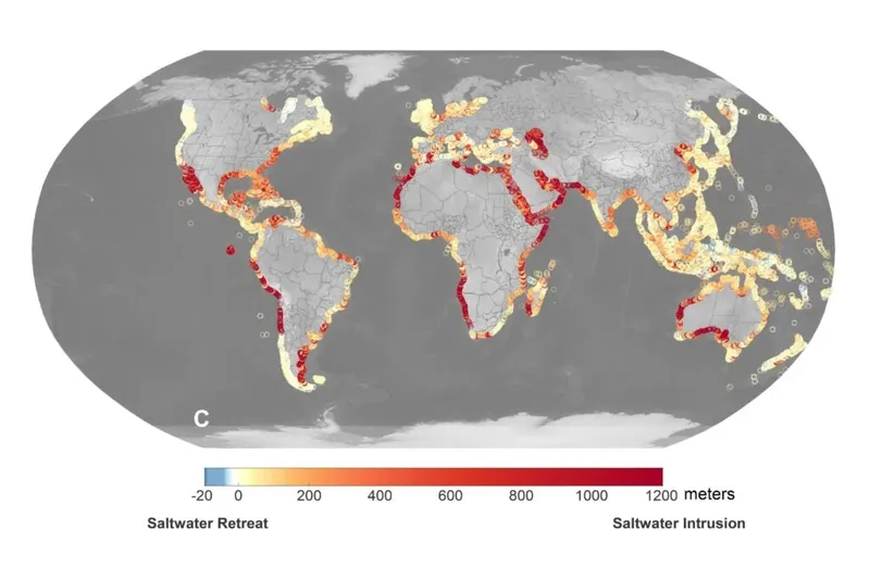 Noile cercetări ale Jet Propulsion Laboratory (JPL) al NASA și ale Departamentului american al Apărării (DOD) sugerează că apa sărată va contamina apa dulce subterană în aproximativ 75% din zonele de coastă ale lumii până la sfârșitul secolului.