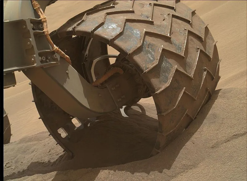 Plan apropiat cu roata roverului Curiosity, pe planeta Marte - Foto: Profimedia Images