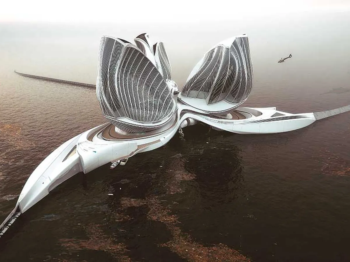 Structura spectaculoasă a stației „The 8th Continent“ stă pe o platformă plutitoare cu tentacule ca de caracatiță.
