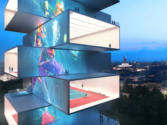 Arhitectura viitorului: Playscraper, zgârie-noriul demontabil cu 8 terenuri de tenis suprapuse