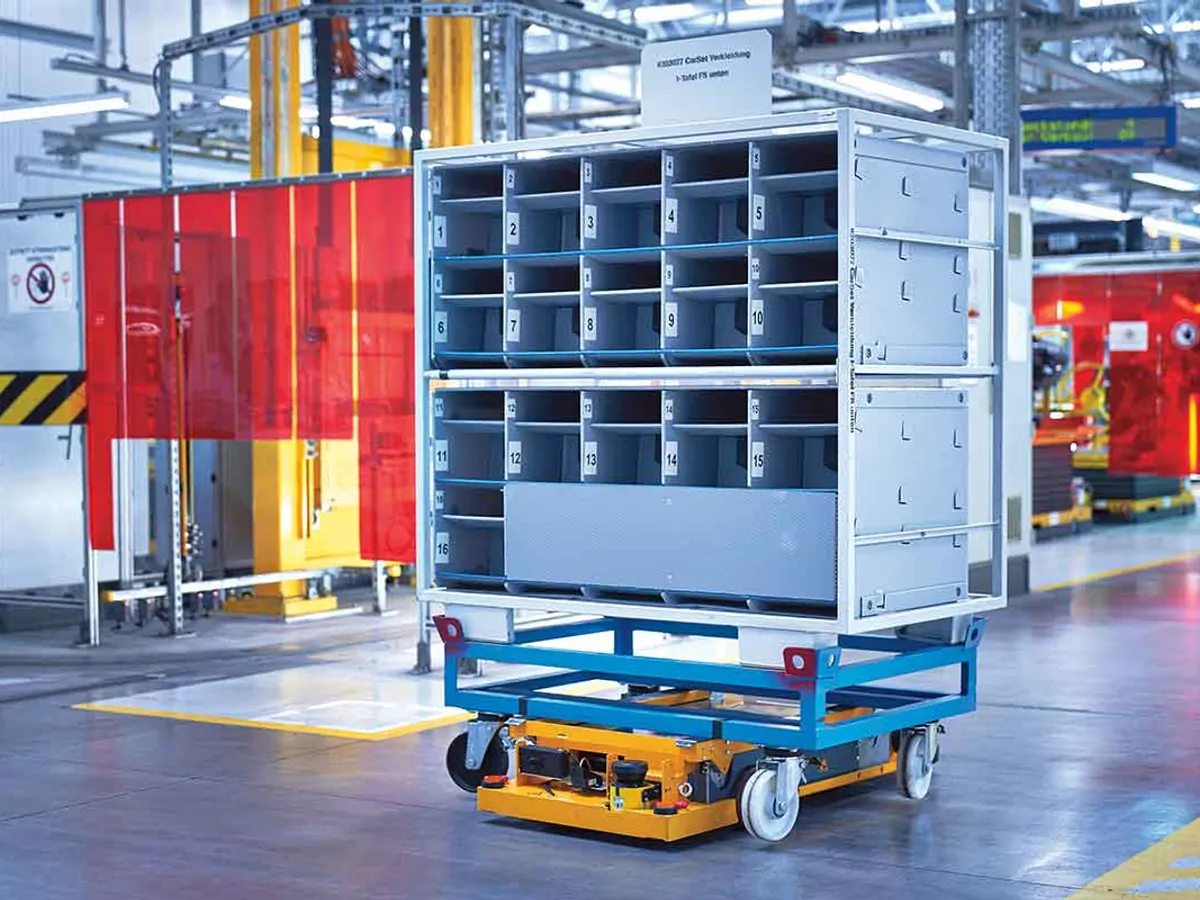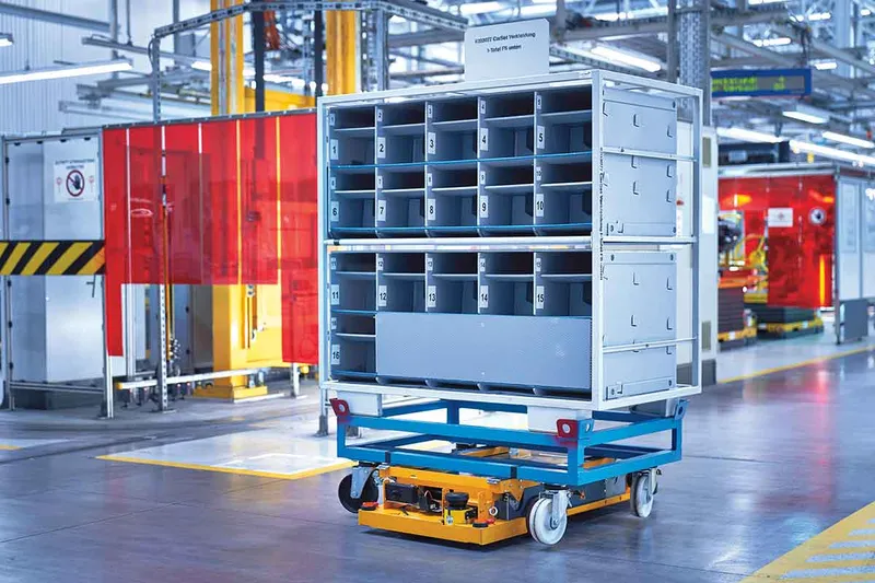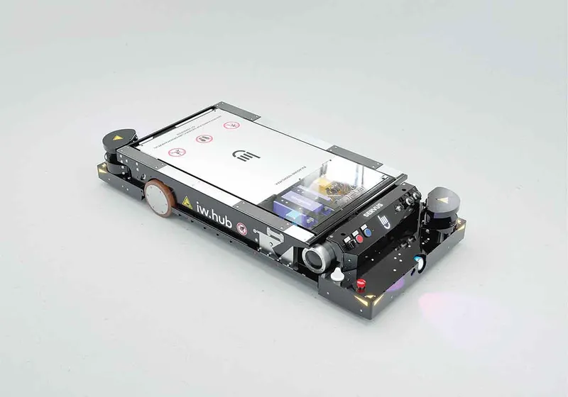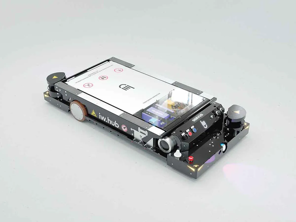 AMR-ul „iw.hub“ poate transporta mărfuri cu o greutate de până la o tonă și se deplasează liber și independent în spațiul alocat, calculând cel mai bun traseu folosind metoda de navigare SLAM (cartografiere şi localizare simultană).