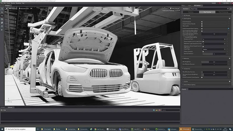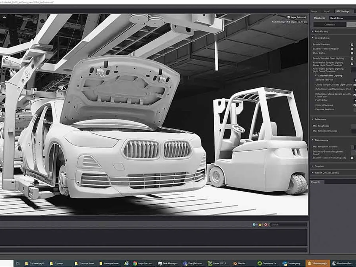 De asemenea, Omniverse poate genera simulări fotorealiste de calitate foarte bună, în timp real, astfel încât specialiști din diferite locații să poată colabora live, și permite integrarea datelor structurii clădirii, precum şi a articolelor şi a numărului de piese necesare în producție, pentru planificarea logistică.