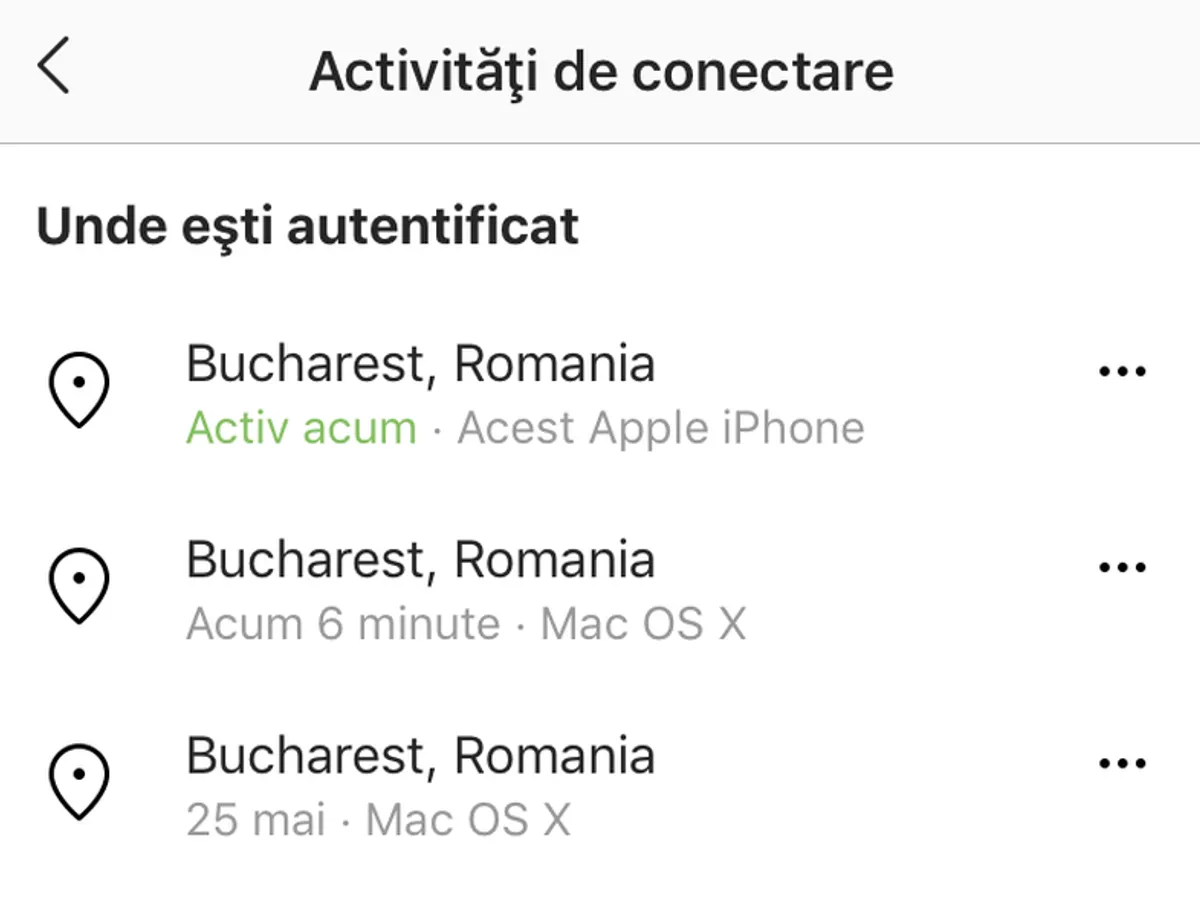 Similar, pe Instagram, din Setări, putem vedea toate locațiile fizice și dispozitivele de pe care ne-am logat. Dacă o locație din listă sau un dispozitiv par nefamiliare, putem alege, la fel ca în cazul Facebook, să ne deconectăm. Tot din Setări, pe Instagram, putem alege să ne facem contul unul Privat.