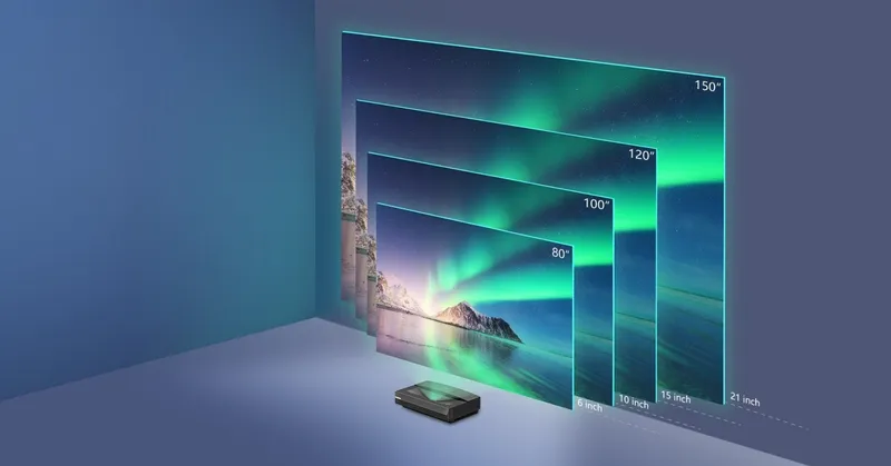 Laserul revoluționează lumea proiectoarelor. Bomaker Polaris Laser TV poate proiecta imagini la rezoluție 4K pe o suprafață albă cu diagonala de 4,8 metri de la o distanță de doar 75 de centimetri sau pe o suprafață cu diagonala de 2,4 metri, de la 24 de centimetri.